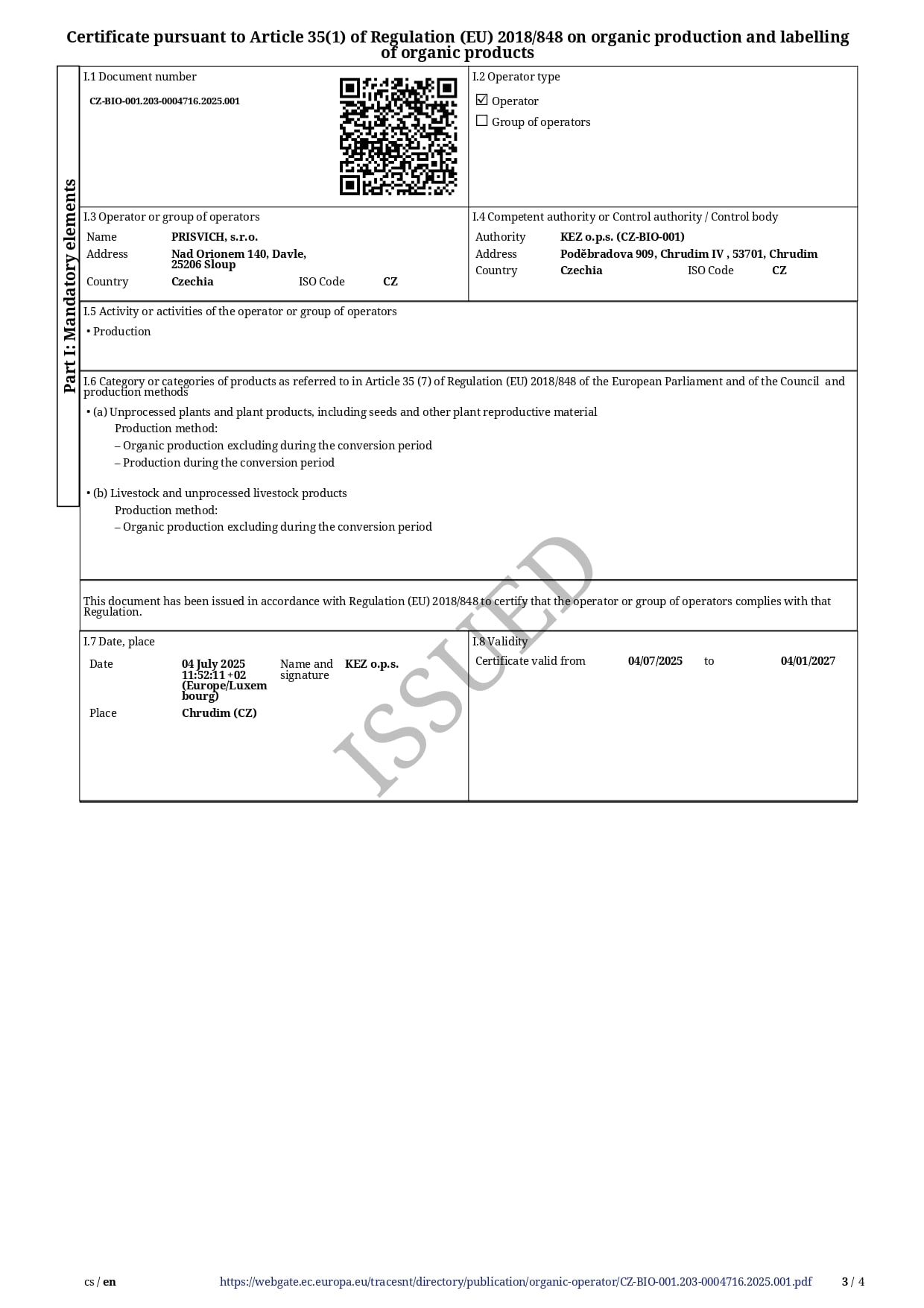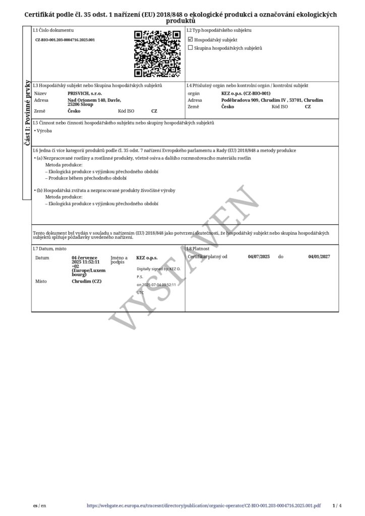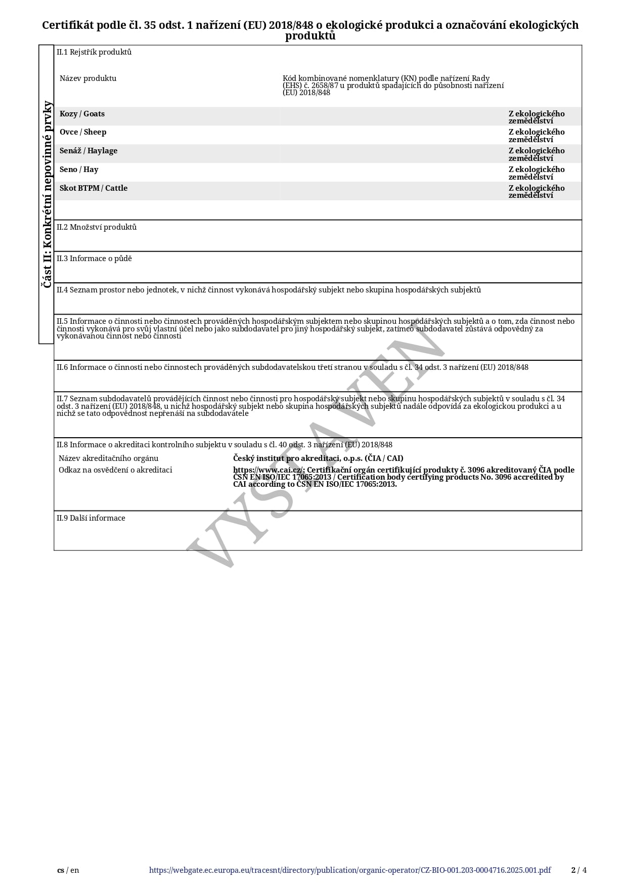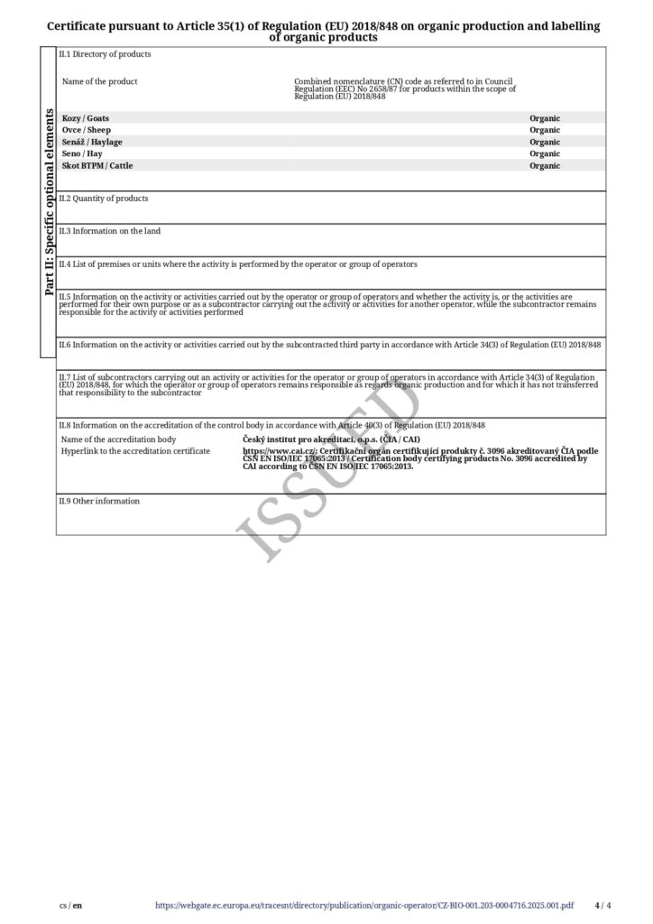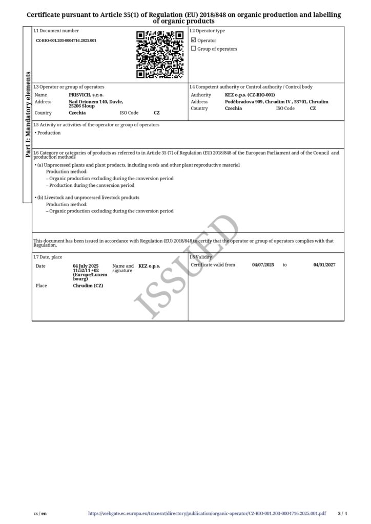 Naše farma je od roku 2011 certifikována jako ekologická a dohlíží na ni kontrolní organizace KEZ o.p.s.
