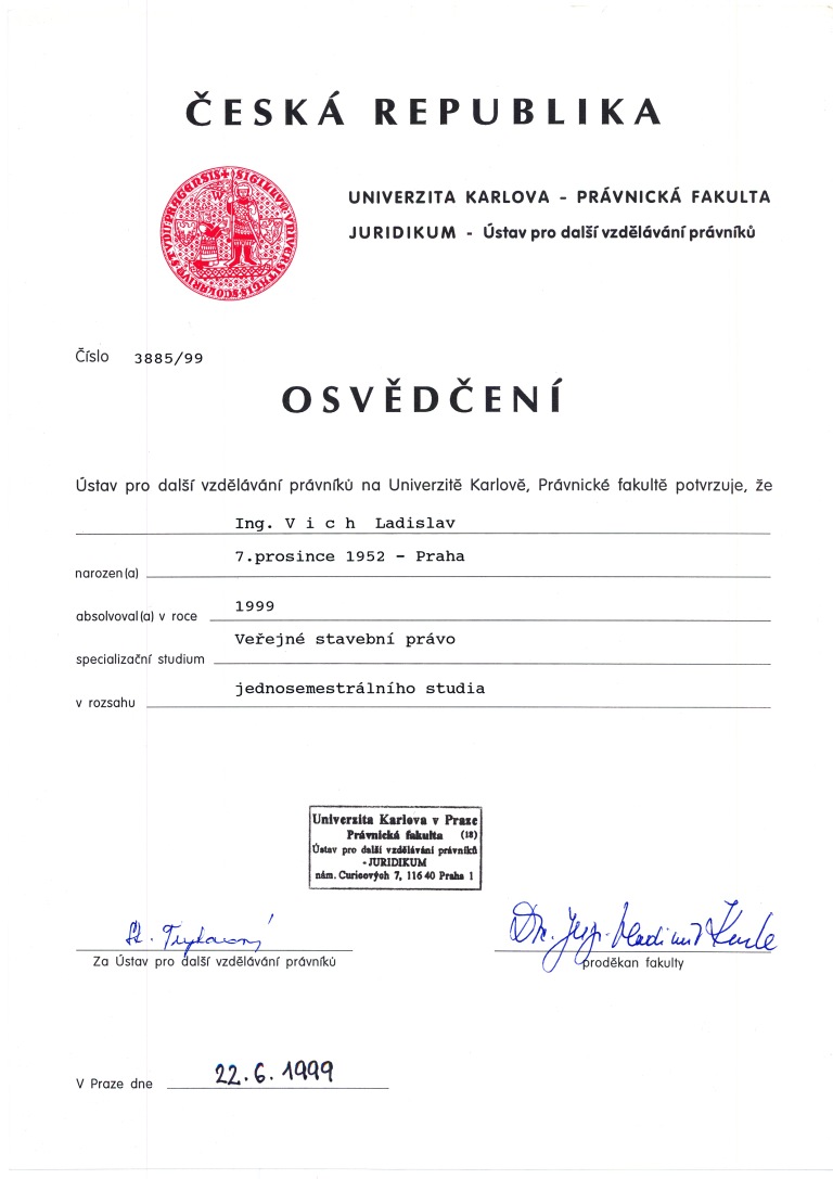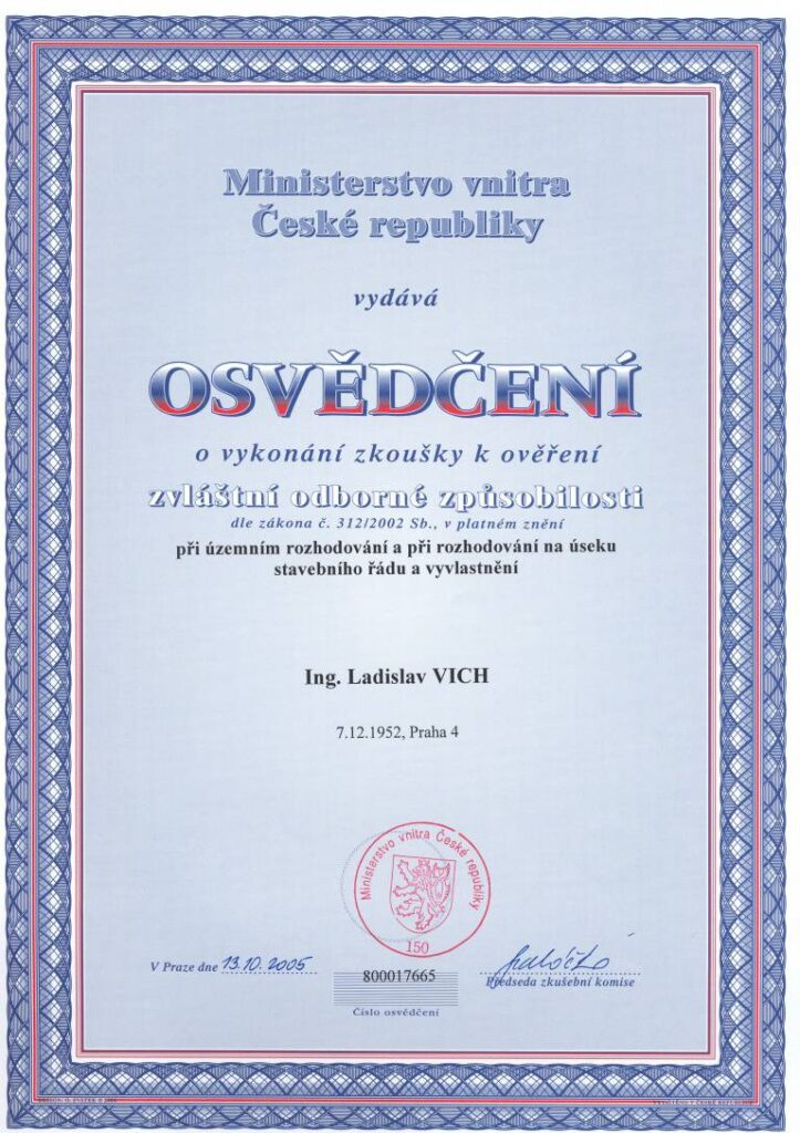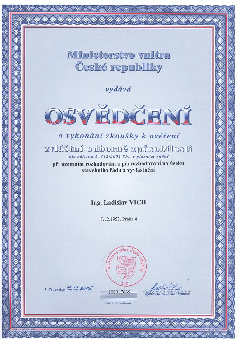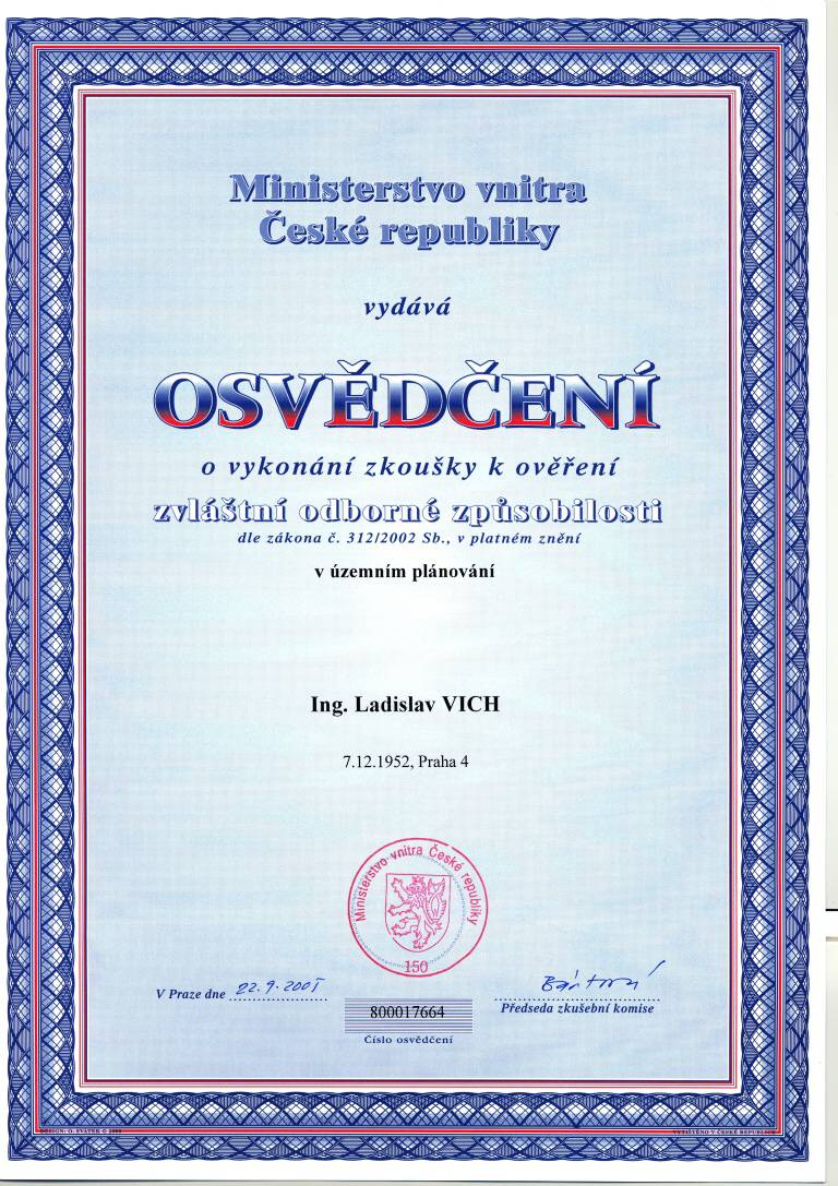 O vykonání zkoušky k ověření zvláštní odborné způsobilosti v územním plánování – Ing. Ladislav Vich