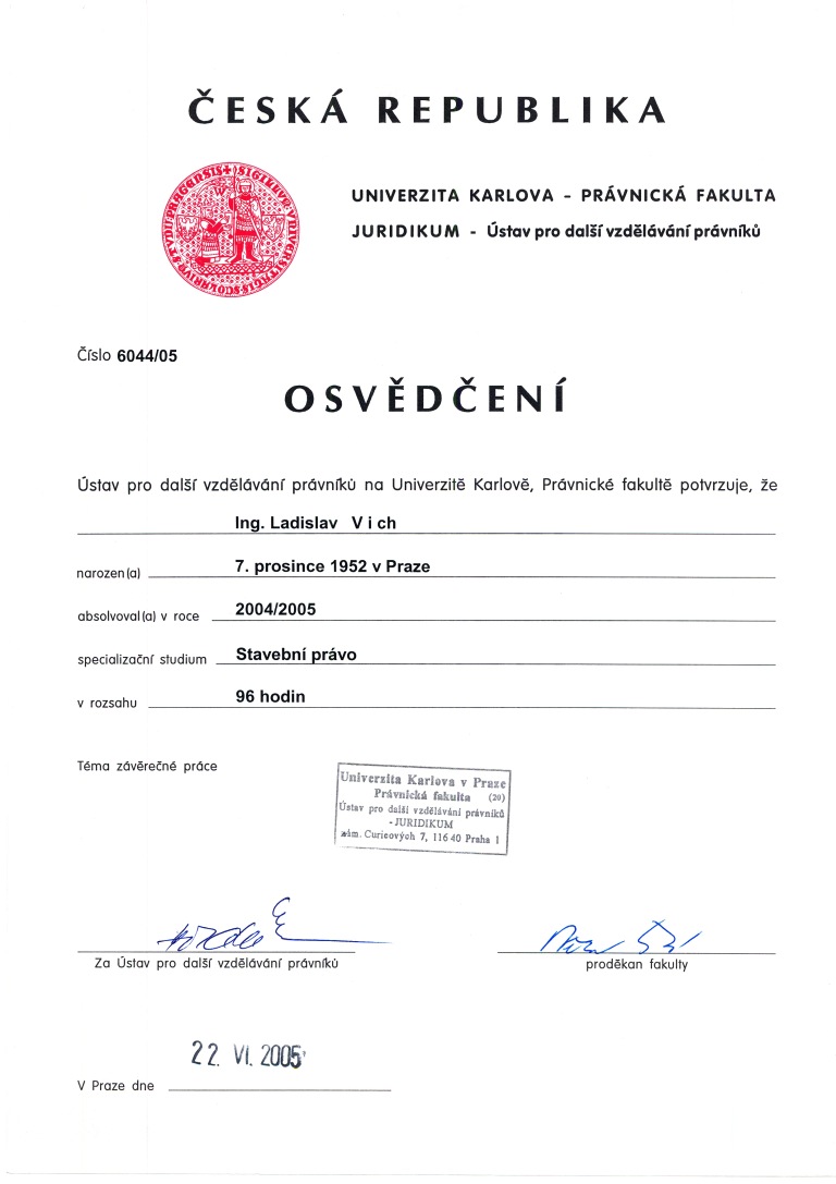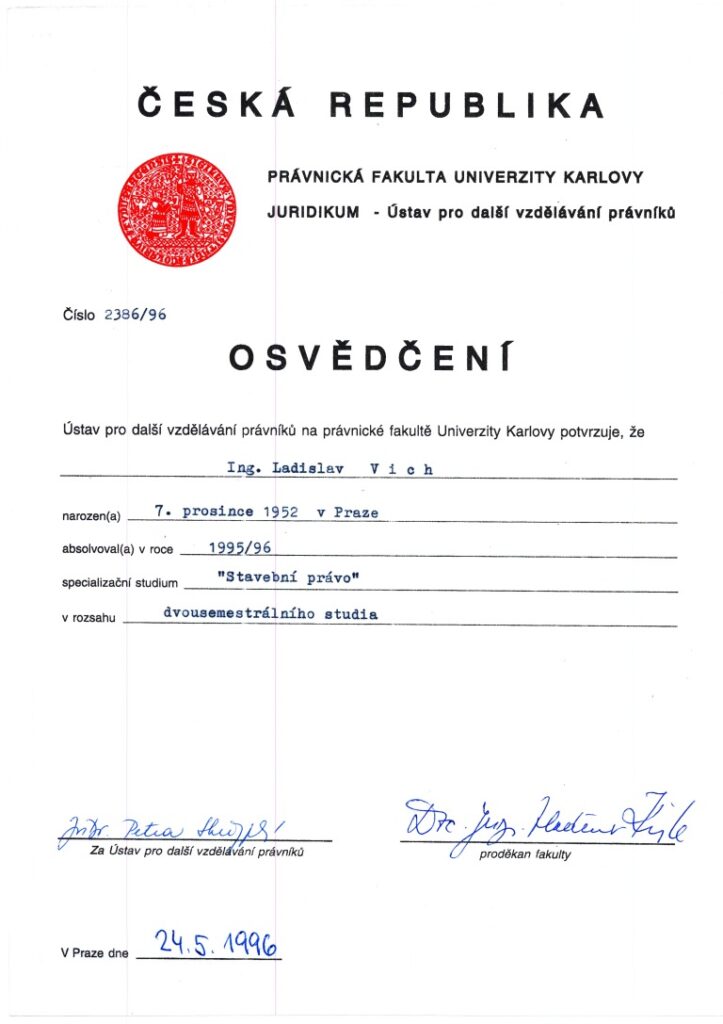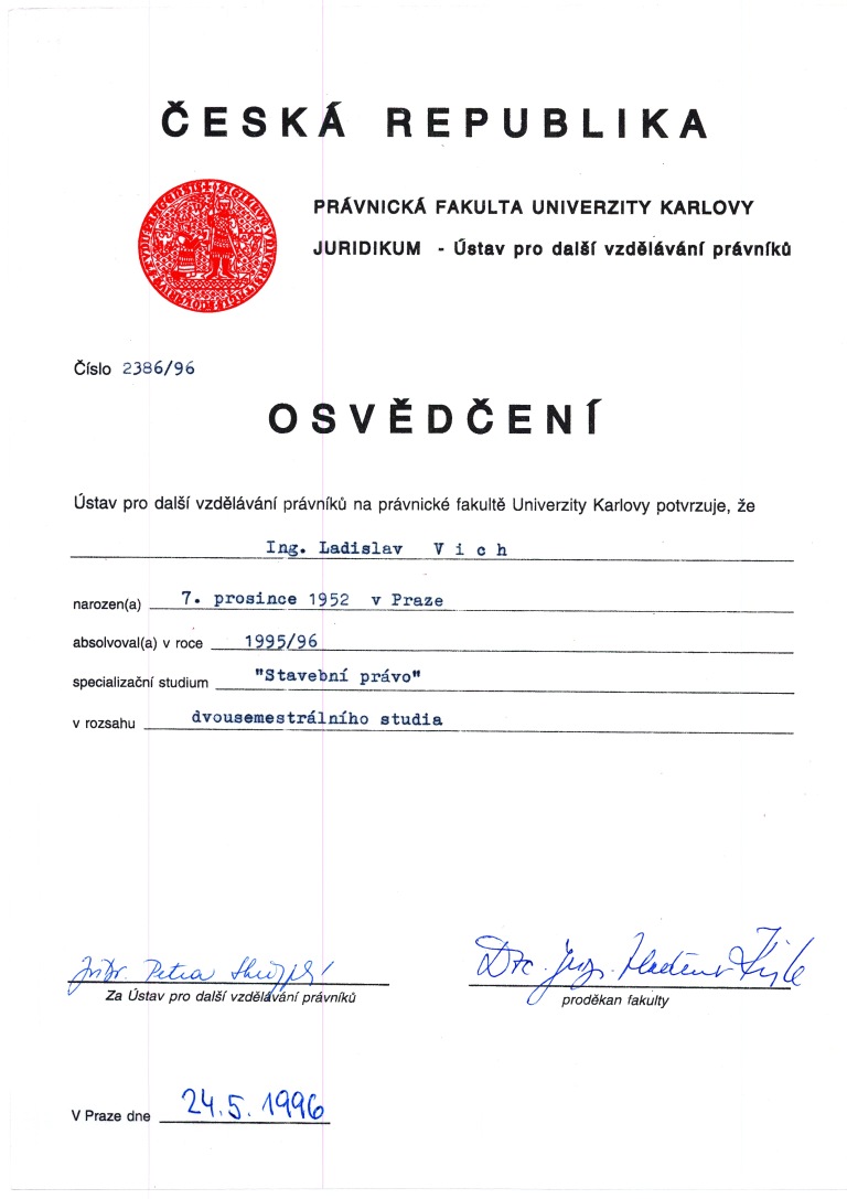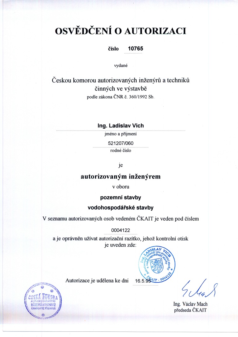 O vykonání zkoušky k ověření zvláštní odborné způsobilosti v územním plánování – Ing. Ladislav Vich
