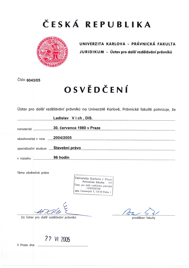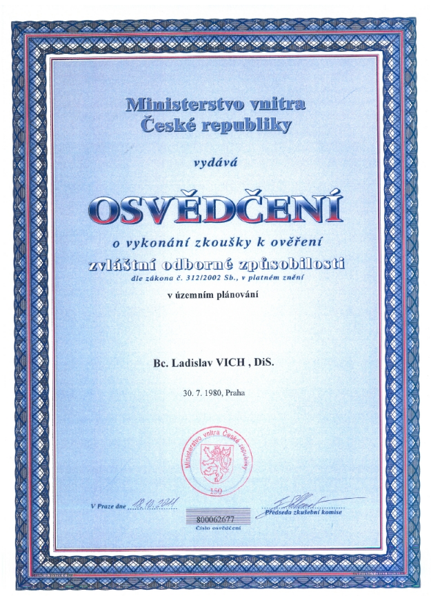 O vykonání zkoušky k ověření zvláštní odborné způsobilosti v územním plánování – Bc. Ladislav Vich, DiS.